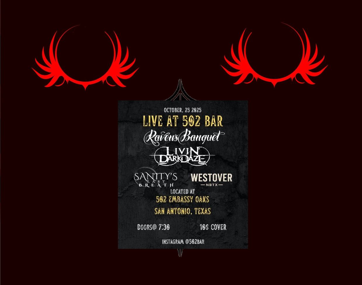 Livin' Dark Daze will be performing LIVE at 502 BAR October 25th 13th 2025. Bands start at 9:30pm so get there early. Use "50225" for 10% of...